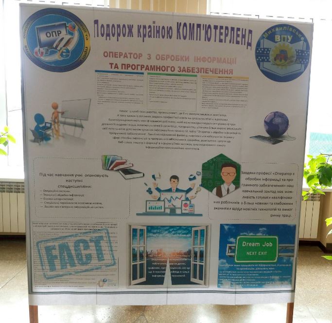 1. В понеділок, 04.02.19р. ми ознайомили всіх з особливостями та цікавинками професії "Оператор з обробки інформації та програмного забезпечення", оформивши інформаційний стенд.